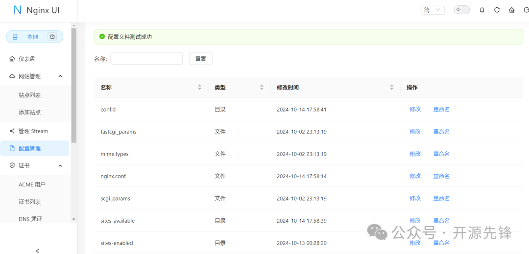 Nginx UI 的界面简洁大方,功能一目了然。