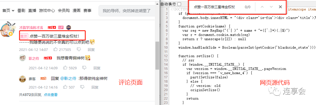 按照惯例,我们先看一下网页源代码,由于信息太多了,可以直接使用搜索功能。在网页源代码页面,搜索评论内容,发现没有这个数据。
