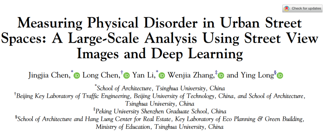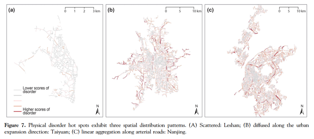 题目:Measuring Physical Disorder in Urban Street Spaces: A Large-Scale Analysis Using Street View Images and Deep Learning期刊:Annals of the American Association of GeographersDOI:https://doi.org/10.1080/24694452.2022.2114417物理失序与经济表现、公共卫生和社会稳定的负面结果有关,例如财产贬值、精神压力、恐惧和犯罪。有限但不断增长的文献考虑了城市空间中的物理失序,尤其是在精细尺度上识别物理失序的主题。然而,目前还没有有效且可复制的方法来以低成本在大范围内精细测量物理失序。为了填补这一空白,本文提出了一种方法,利用大量街景图像作为虚拟审计的输入数据,并使用深度学习模型来定量测量城市街道空间的物理失序。据我们所知,在中国城市超过 70 万条街道上实施这一方法的结果验证了该方法的有效性和效率,据我们所知,这是全球首次尝试量化如此大的城市地区的物理混乱。通过对中国的大规模实证分析,本文做出了一些理论贡献。首先,我们扩展了以前在美国研究中被忽视的物理失序因素。其次,我们发现城市物理失序呈现出分散型、分散型和线性集中型三种典型的空间分布格局,这为揭示城市物理失序的发展趋势和进行空间干预提供了参考。最后,我们对物理失序和街道特征之间的回归分析确定了可能影响物理失序的因素,从而丰富了理论基础。