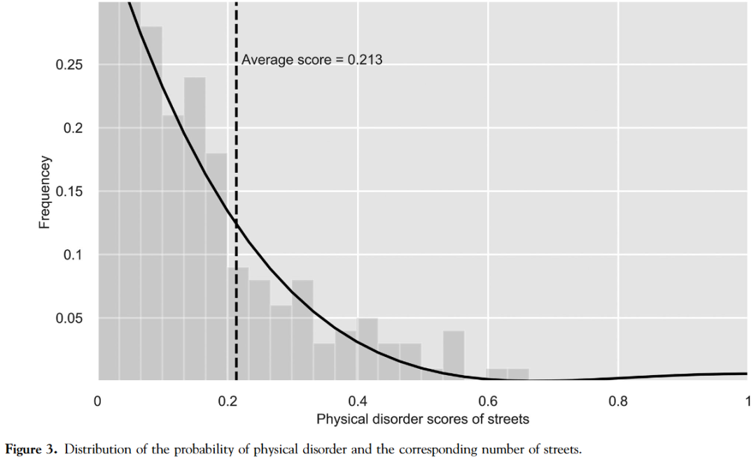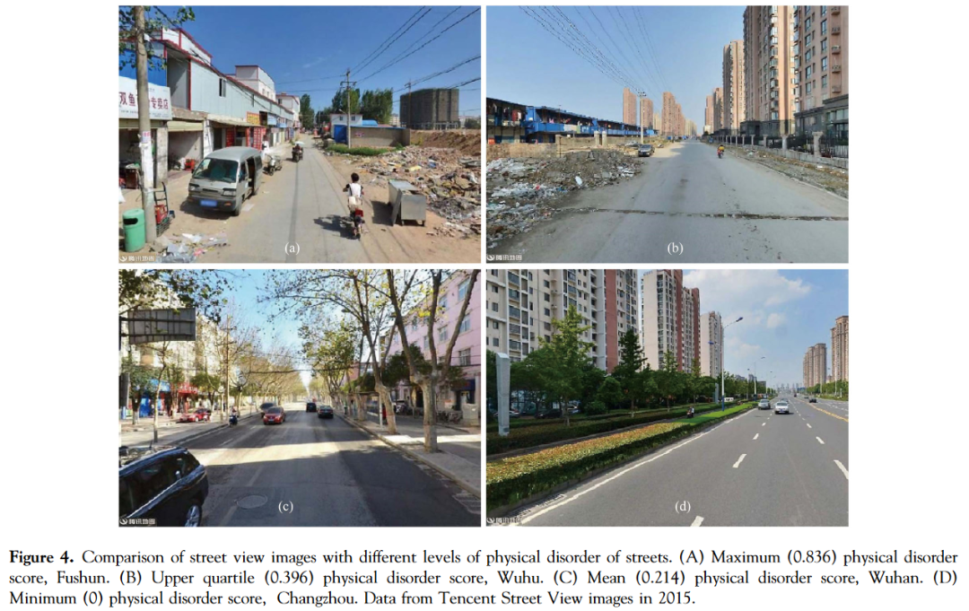 是城市衰败的外在表现,并与盗窃、抢劫和卖淫等犯罪有关(Skogan 1990;Ross 和 Jang 2000)。此外,流行病学界发现,生活在身体疾病程度较高的环境中的居民往往会承受更大的压力和恐惧,这可能引发不健康的行为(例如酗酒;Keyes et al. 2012)和不良后果(例如酗酒)(Burdette 和 Hill 2008)。因此,城市空间的物理失序已成为连接城市规划、社会科学和公共卫生的一门交叉学科,受到学术界和实践者的广泛关注。