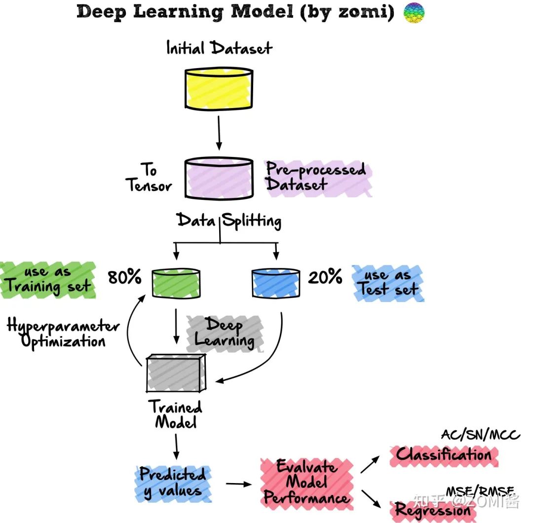 接下来,利用训练集建立预测模型,然后将这种训练好的模型应用于测试集(即作为新的、未见过的数据)上进行预测。根据模型在测试集上的表现来选择最佳模型,为了获得最佳模型,还可以进行超参数优化。