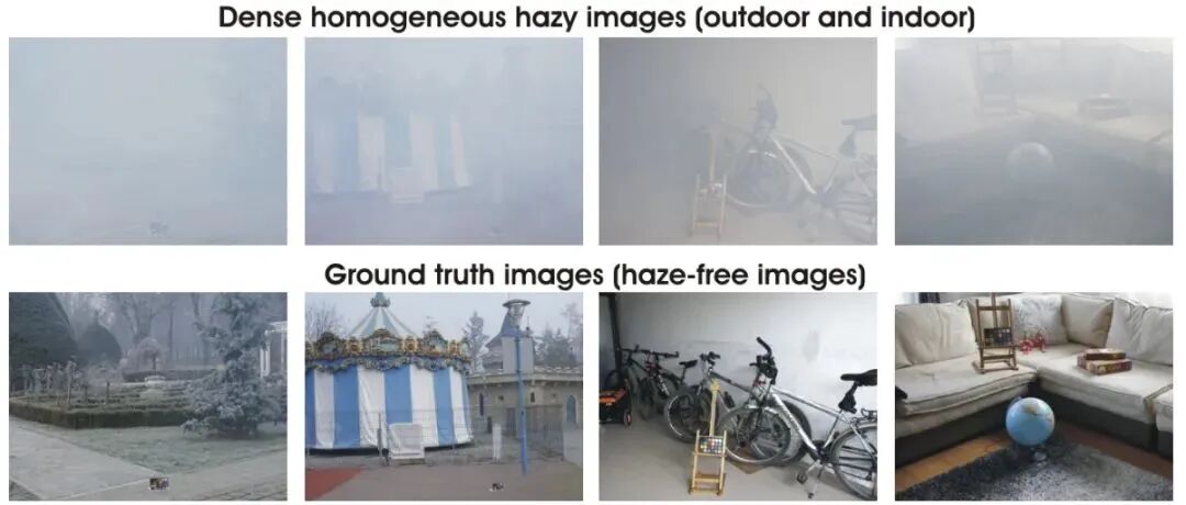 这是一个非均匀的真实数据集,具有成对的真实雾度和相应的无雾度图像。这是第一个非齐次图像去模糊数据集,包含55个室外场景。在场景中引入了非均匀雾,使用专业雾发生器模拟雾场景的真实条件。
