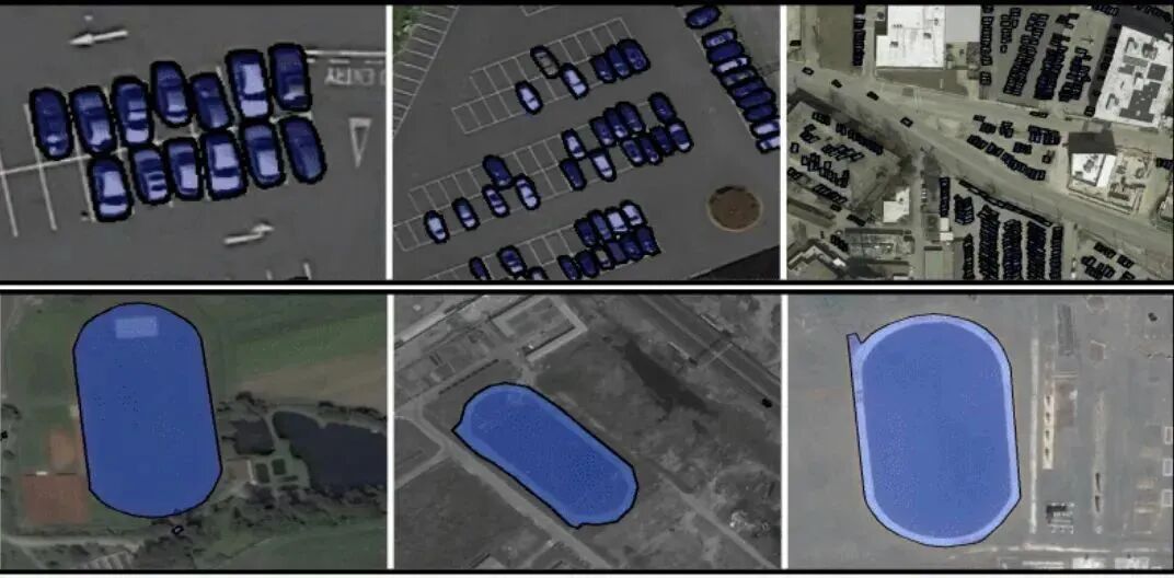 这是遥感领域的非模态实例分割数据集。数据集目前仅包含 9 张图片,其余 1000+ 张图片将在稍后发布。屋顶、建筑物和遮挡类别在数据集中进行了标记,分别表示建筑物的屋顶、建筑物的整个区域和建筑物的遮挡部分。