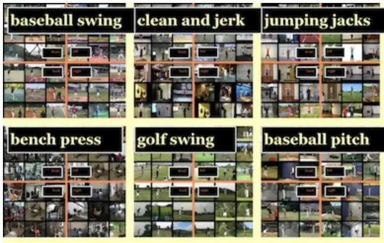 Penn Action Dataset(宾夕法尼亚大学)包含 15 个不同动作的 2326 个视频序列以及每个序列的人类联合注释。