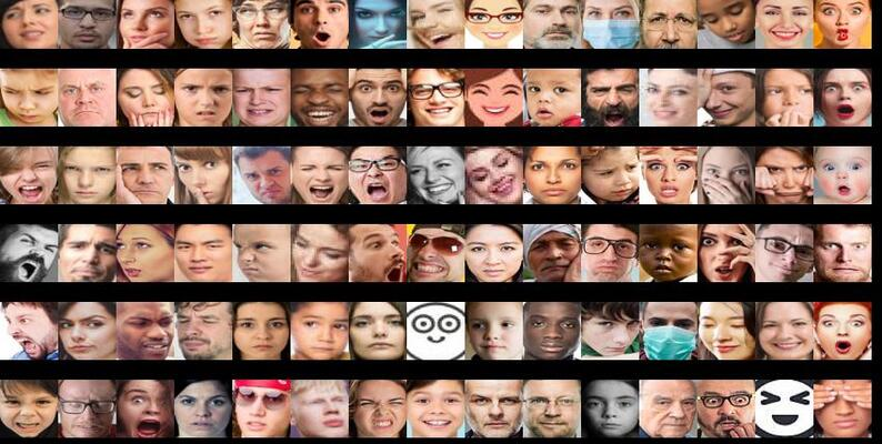 数据由 48x48 像素的人脸灰度图像组成。人脸已自动注册,因此人脸或多或少居中,并且在每张图像中占据大致相同的空间训练集包含 28,709 个示例,公共测试集包含 3,589 个示例。