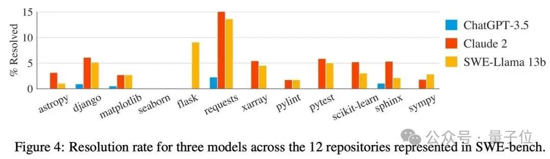 在SWE-bench中解决问题通常需要同时理解和协调多个函数、类甚至文件之间的更改,要求模型与执行环境交互,处理极长的上下文并执行比传统代码生成更复杂的推理。作者评估表明,Claude 2和GPT-4仅能解决其中4.8%和1.7%的实例。