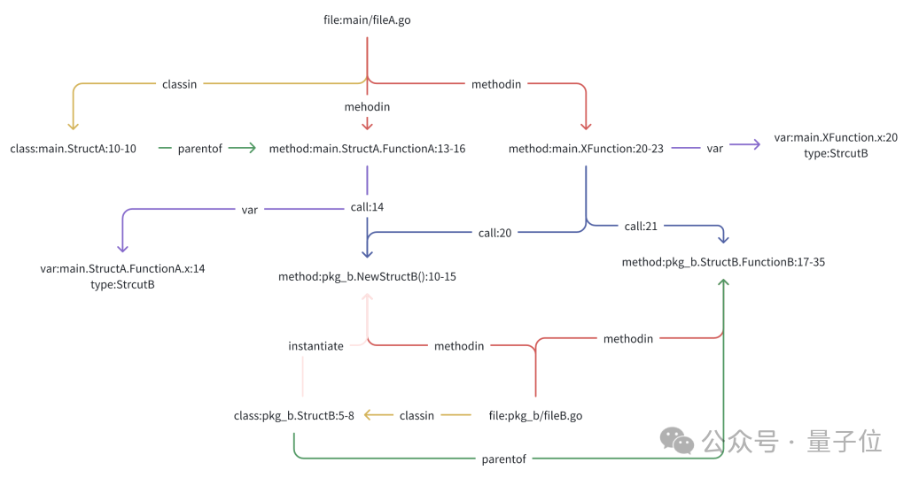 在这种图结构中,顶点代表代码的实体(如函数、变量、类等),边则代表实体之间的关系(如函数调用、变量引用、类的继承关系等)。通过这种方式,代码知识图谱可以为代码库提供更丰富且结构化的信息。