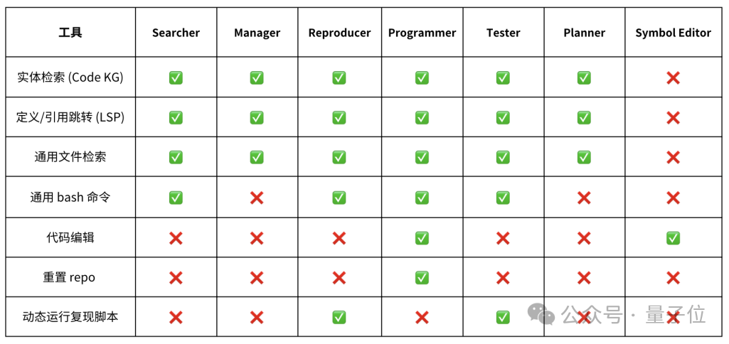 团队为不同的Agent配备了相应的工具集以支撑其完成指定任务,各Agent配备的工具集如下表所示。