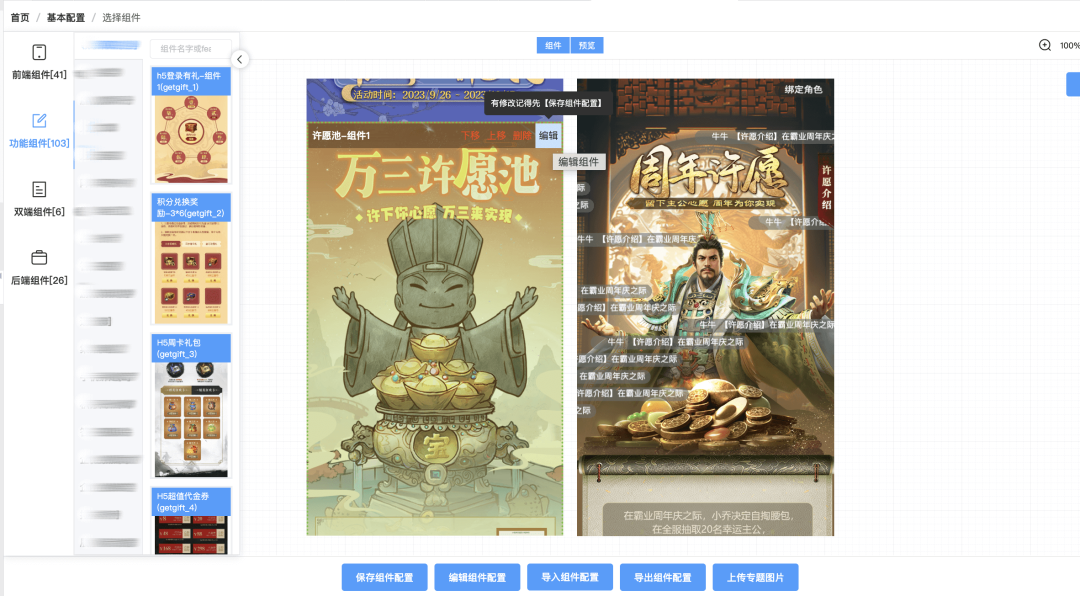对需要调整的组件进行编辑,替换所需的前端元素,例如图片素材,文案,位置色彩配置等