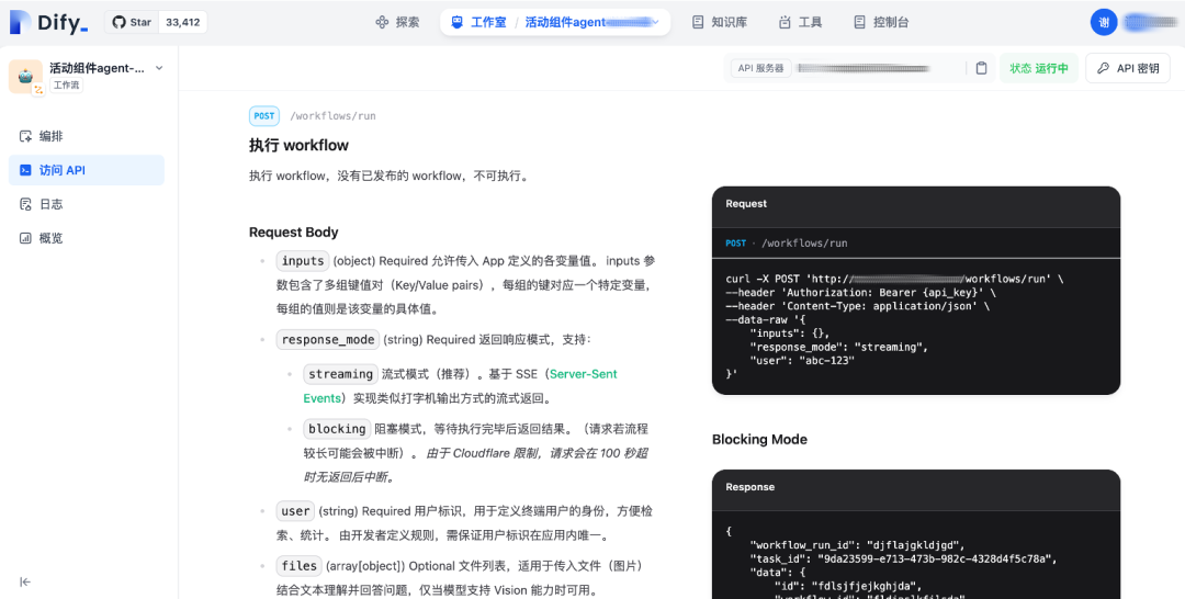 最后,根据 Dify 提供的 RESTful API 接口,把我们工作流的能力接入到业务系统,就完成了整个想法的落地: