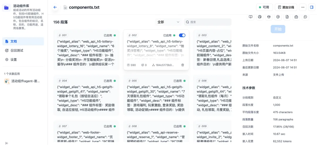 运用 Dify 平台的知识库功能,对我们原始数据文本进行分段和清洗,最终 Embedding 为知识库: