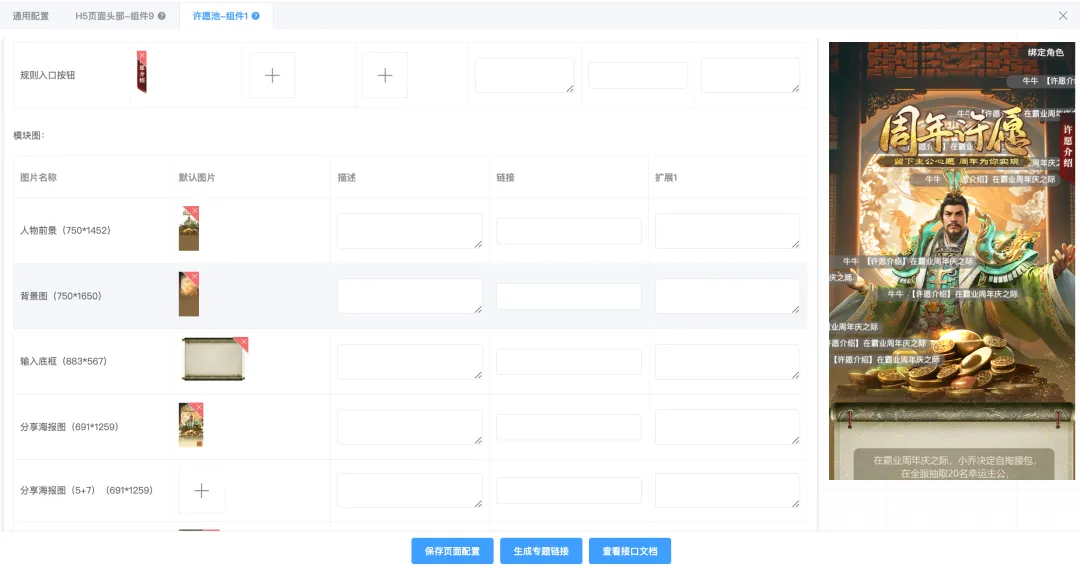 除了前端静态元素外,还具备该组件对应的后端功能配置。根据不同的组件后台将程序不同的功能配置项。配置好相应的规则后即具备了相应的后端功能。