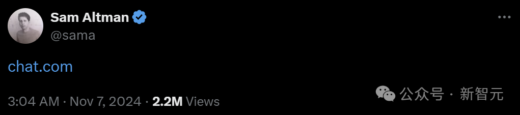 而现在,Sam Altman用一条仅有8个字符的推文(不得不说真够简洁的)揭示了他们就是买家。如果你现在访问这个网站,它会直接跳转到ChatGPT。而在Dharmesh帖子中,还给了一个提示让大家去问o1,奥特曼具体购买价格。o1对此回复道,「他可能通过谈判获得了OpenAI的股份」。值得一提的是,此前就曾曝出,OpenAI早在2021年便斥资1100万美金买下了高度象征人工智能的域名——ai.com,并在去年2月时定向到了ChatGPT。也就是说,现在不管是输入chat.com还是ai.com,都可直接跳转到ChatGPT的网站了。https://x.com/sama/status/1854238332534108188https://x.com/dharmesh/status/1854307883304792294