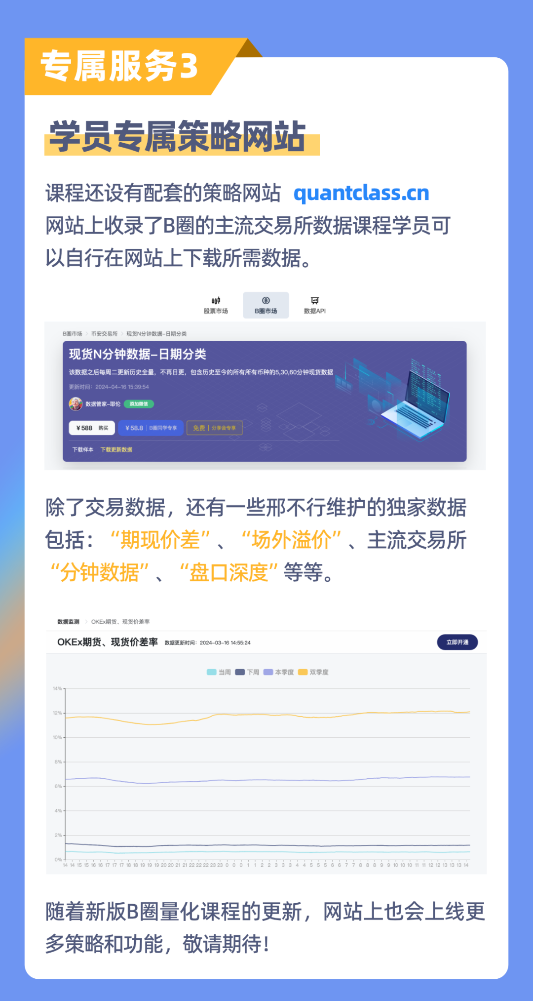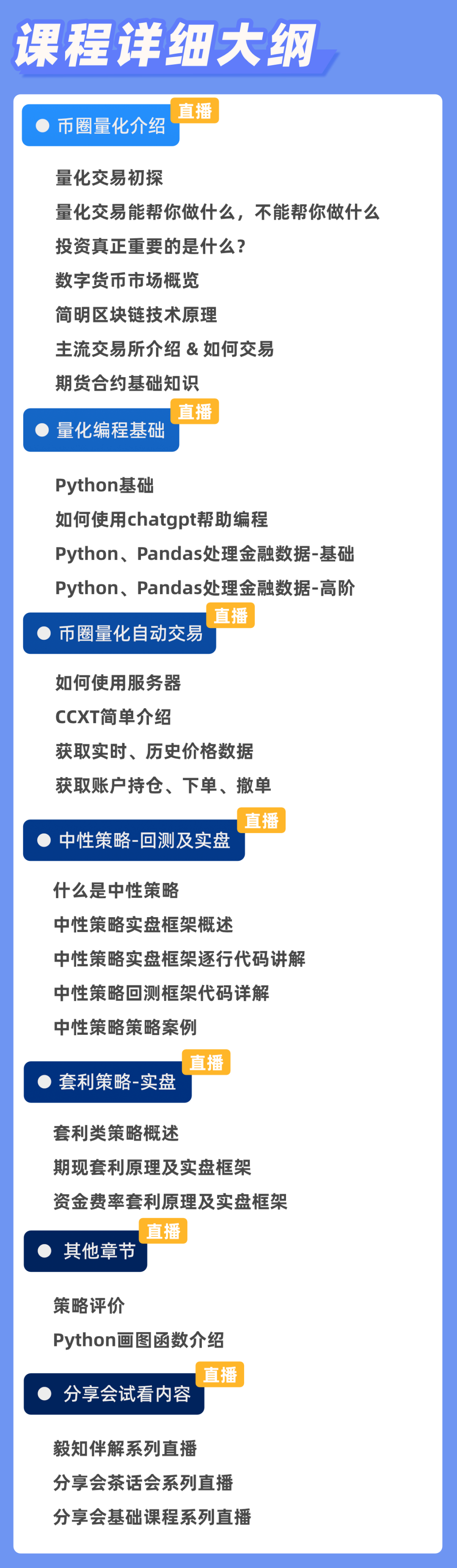 以下是Python数字货币量化课程目录、服务、福利介绍: