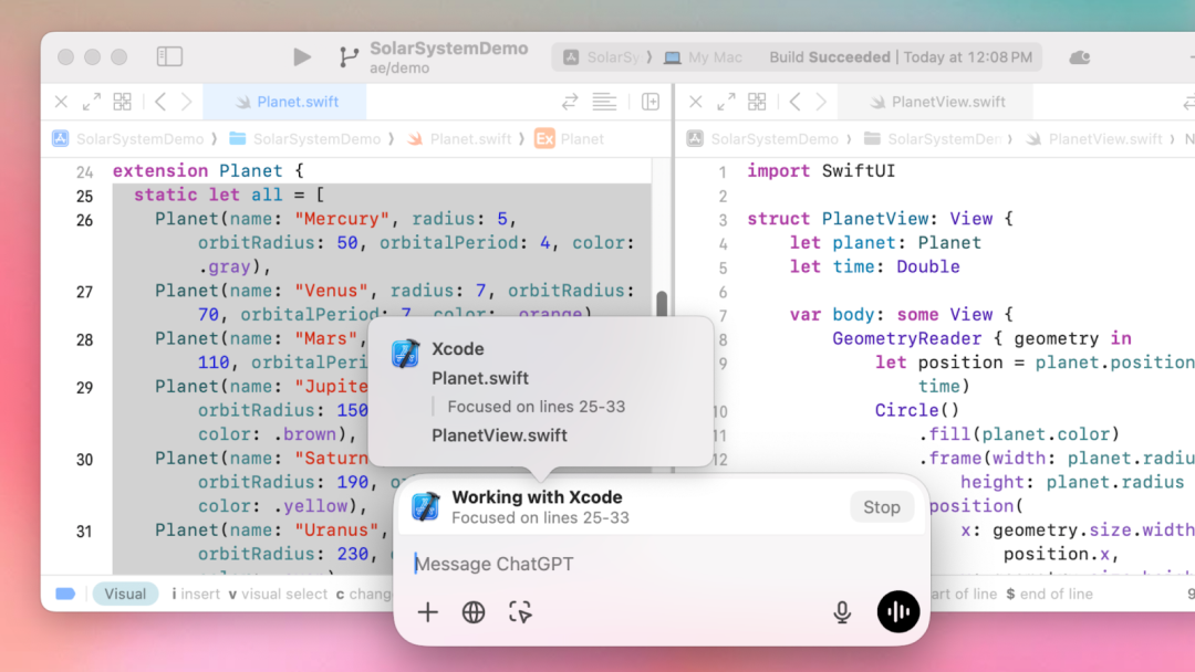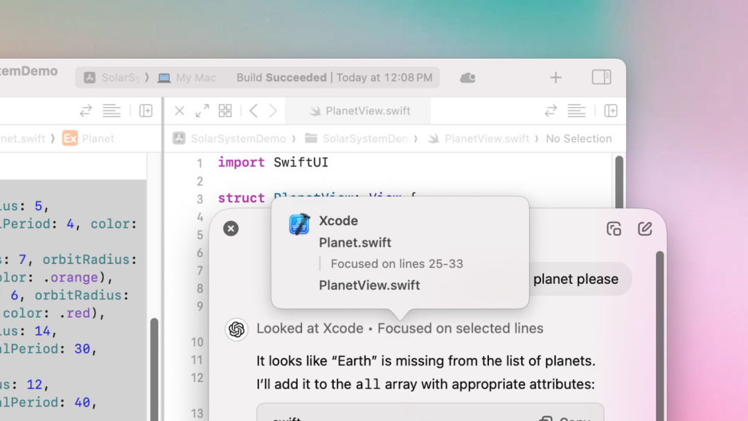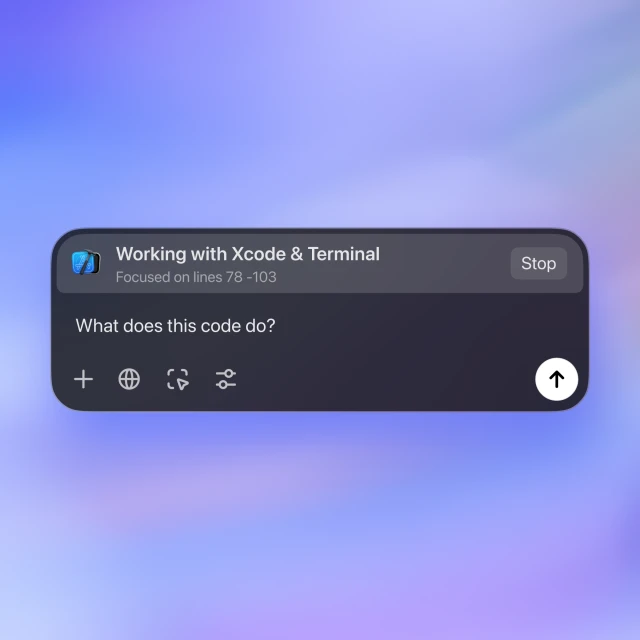 使用编辑器和 IDE(Xcode、VS Code、TextEdit)时,ChatGPT 会包含打开的编辑器窗格的全部内容,直到达到最大长度限制被截断。