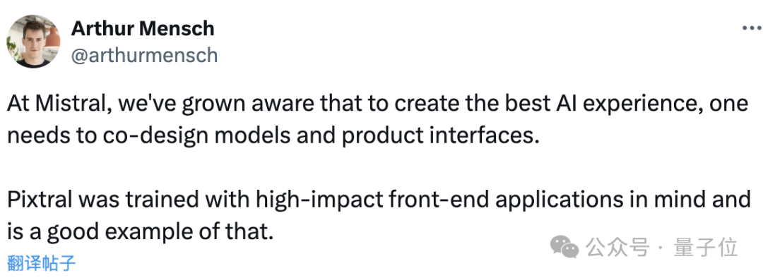同时,Pixtral Large在训练的过程当中还考虑到了前端应用,对此Mistral的CEO Arthur Mensch解释道: