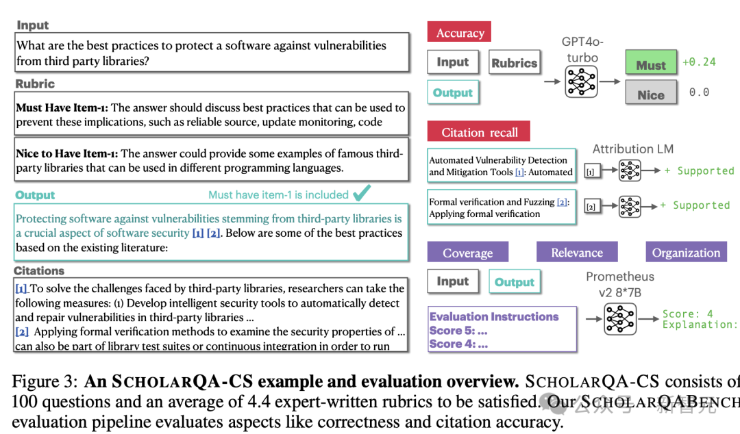 此外,基准中引入了多方面的评估方案,结合了自动指标和人工评估,以衡量引文准确性、事实正确性、内容覆盖率、连贯性和整体质量,确保评估的稳健和可重复性。