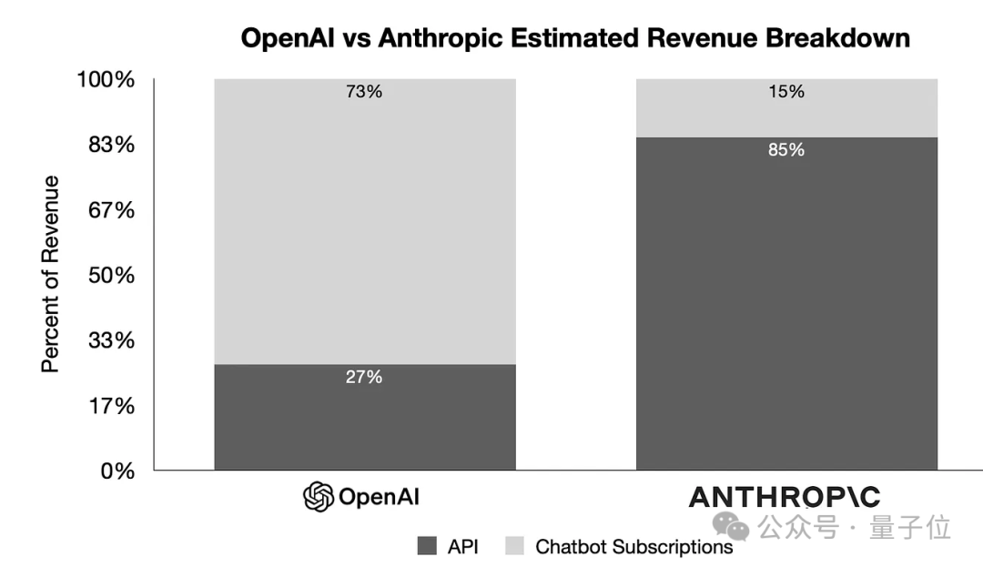 此前有人估算,与OpenAI大部分收入来自ChatGPT应用订阅不同,Anthropic约85%的收入来自API调用。