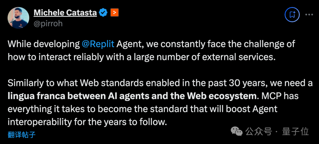 首批合作伙伴、AI编程工具Replit总裁盛赞,MCP将成为AI Agent与互联网生态之间的通用语言。