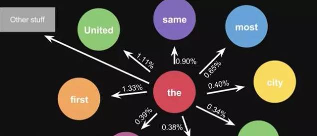这是一句话计算出来的概率,当你用大量文本去做统计的时候,会得到更大的状态转移矩阵,例如the后面可以连接的单词,及相应的概率。