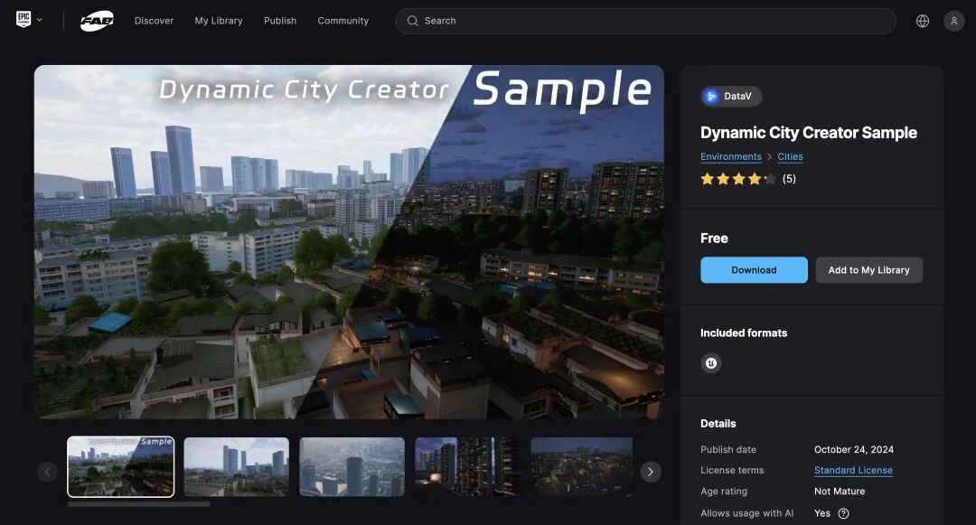 基于DataV“山海计划”的UE引擎插件已经登陆Epic Fab,广大UE引擎开发者可以通过该插件免费体验城市历史悠久的广州场景三维资产,详细资源地址见附录。