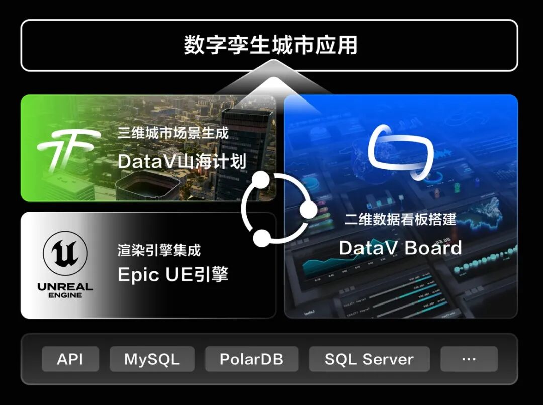 一个完整的智慧城市项目,除了三维城市场景,承载业务数据的数据面板也是核心功能。除了支持三维城市场景生成的“山海计划”,DataV也为智慧城市项目提供了完整的数据看板解决方案,提供200+基础图表、三维/二维地图组件,支持API、MySQL、SQL Server、Polar DB、人大金仓、达梦等30+数据源,提供低代码交互编辑器,实现二三维无缝交互联动。同时DataV也通过了中国信通院首批数据可视化产品信创适配测试认证,为企业信创改造提供了可靠解决方案。通过DataV与UE引擎,广大开发者可以低成本获得“智慧城市”开发方案,不用在三维渲染引擎、三维场景生成、数据看板开发等基础工具平台上耗费更多精力,将更多精力放在满足用户业务需求上,从而提升智慧城市项目的交付质量。2024 Unreal Fest Shanghai分享现场演讲