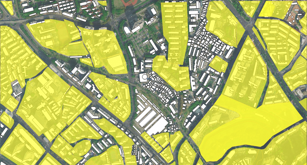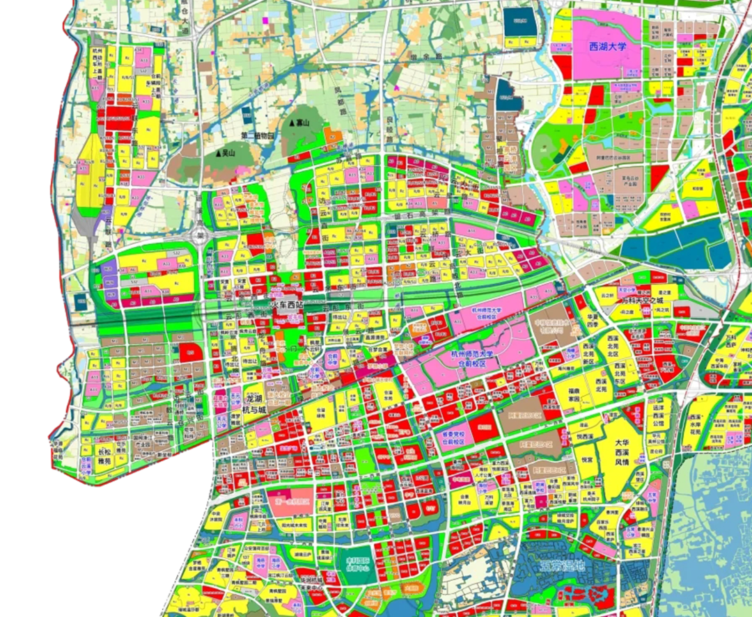 首先我们希望在宏观上找准中国城市风貌的神韵。在我们主观感受上,中国的城市除了部分旧区之外,往往具有规整的建筑排布,和统一的色调分块。这个背后或许呼应着我们国家90年代左右发生的2件事。第一是颁布了城市规划法,我们有了法定的城市规划。下图是一张控制性详细规划图,占比一半以上的黄色部分就是住宅用地。