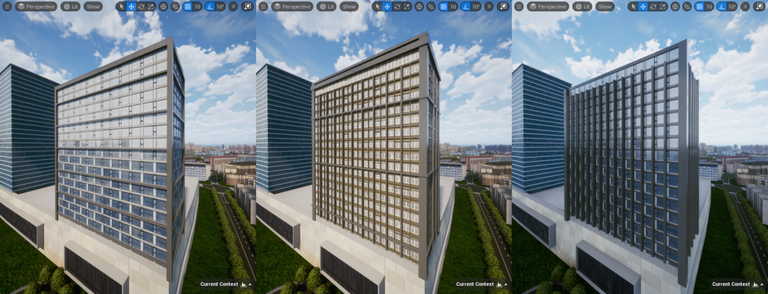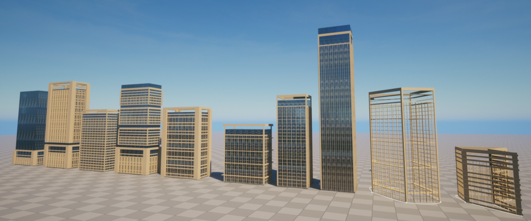 随着虚幻引擎5的推出,承载其动态几何能力的DynamicMesh逐渐走入用户视野,基于其上的Modeling Mode(编辑器手工建模模式)、Geometry Script(程序化几何生成插件)展现出了非凡的参数化设计能力和高性能的Mesh操作与变动能力。我们意识到有机会在UE当中实现诸如Blender、Rhino、Revit等软件的参数化设计能力,并在过程中深度的与UE5的引擎能力进行结合。依据过去的建筑师行业经验与参数化建模实践积累,我们策划并开发了多层级的几何工具,一部分的还原了建筑行业构筑“计算机辅助设计”的流程,以此打造到顺畅的建筑逻辑模型构建技术基底。底层计算层