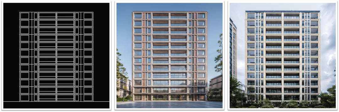 第一种是以建筑结构为导向的思路,主要用在公共建筑,它的形式语言主要遵循梁、柱、板等结构构件的逻辑。通过横向构件、竖向构件、整体框架的自身尺寸变化、节奏变化以及组合关系变化,可以组合出海量的常见的公共建筑形态。