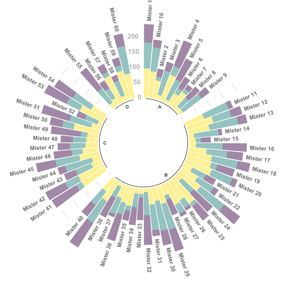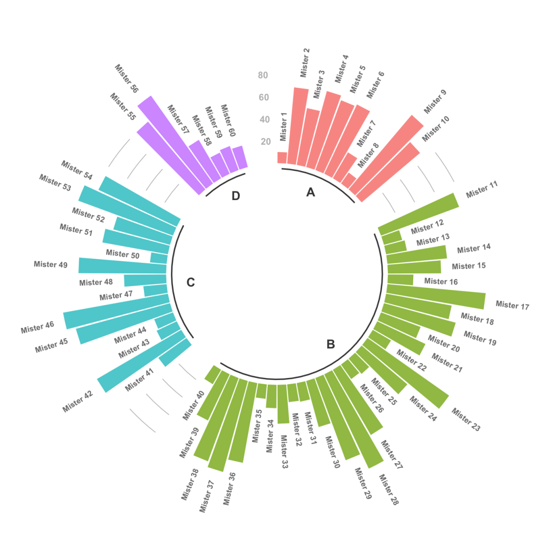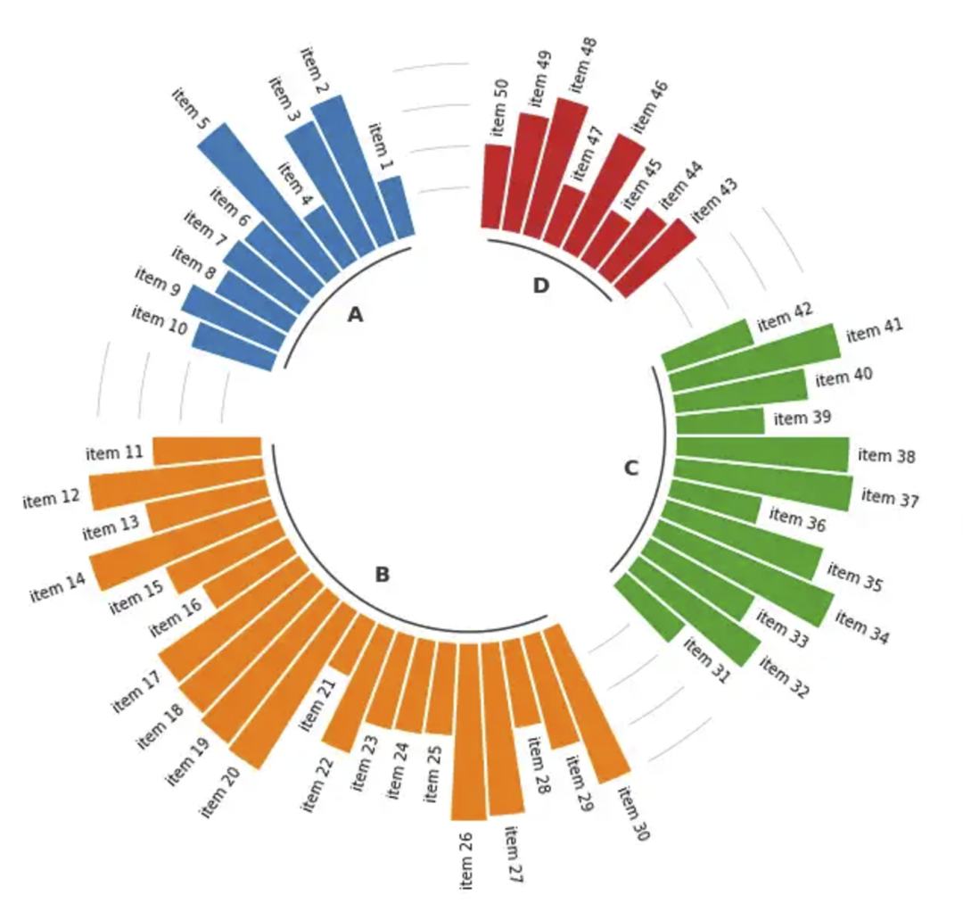 最近又看到几张漂亮的环形条形图,顺着找到了 Python 和 R 的图表画廊,顺便分享出来,大家感受一下。