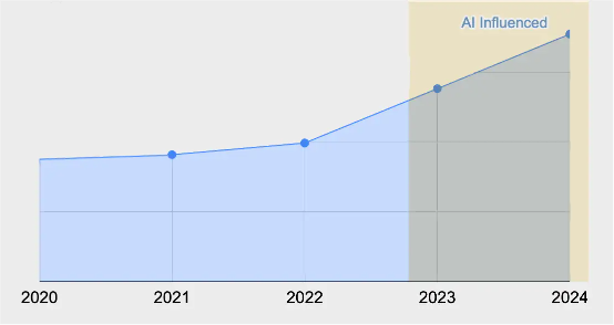预计整个 2024 年,代码轮换(即在创建后不到两周之内,即被修改或更新的代码行所占的百分比)较 AI 出现之前的 2021 年参考值翻了一番。我们还注意到,“添加代码”和“复制 / 粘贴代码”的百分比相较于“代码更新、删除和移动”有所增加。由此看来,AI 生成的代码更类似于随机贡献,很可能破坏相关代码仓库的严密性。