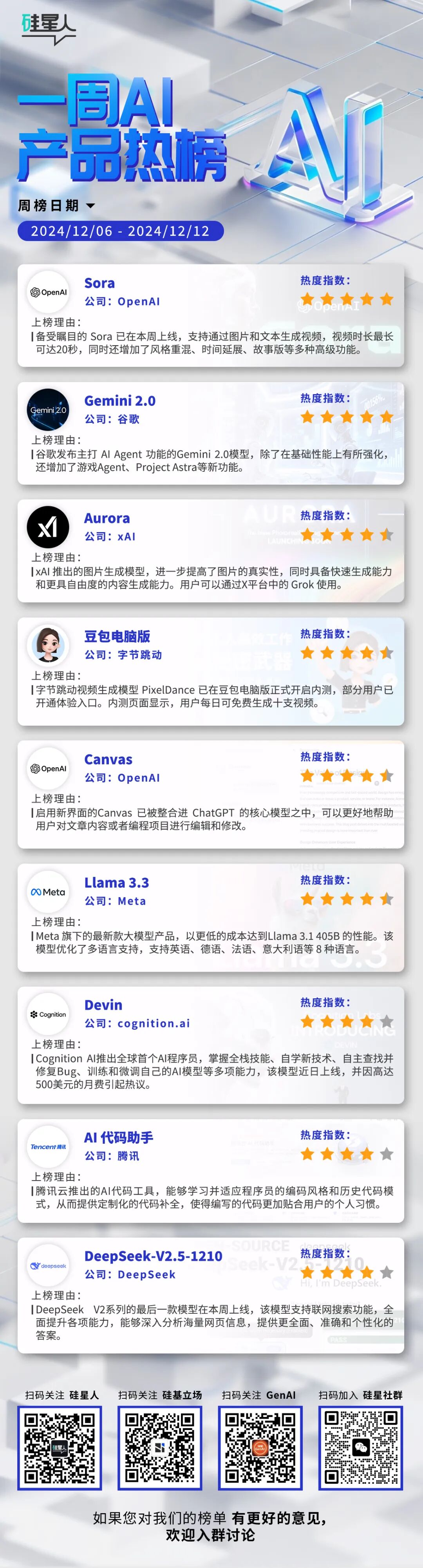 2024年12月,AI技术创新的浪潮一波未平一波又起。ChatGPT开放视频通话能力,谷歌发布Gemini 2.0系列,OpenAI的Sora令人惊艳,AI赛道竞争愈发激烈。