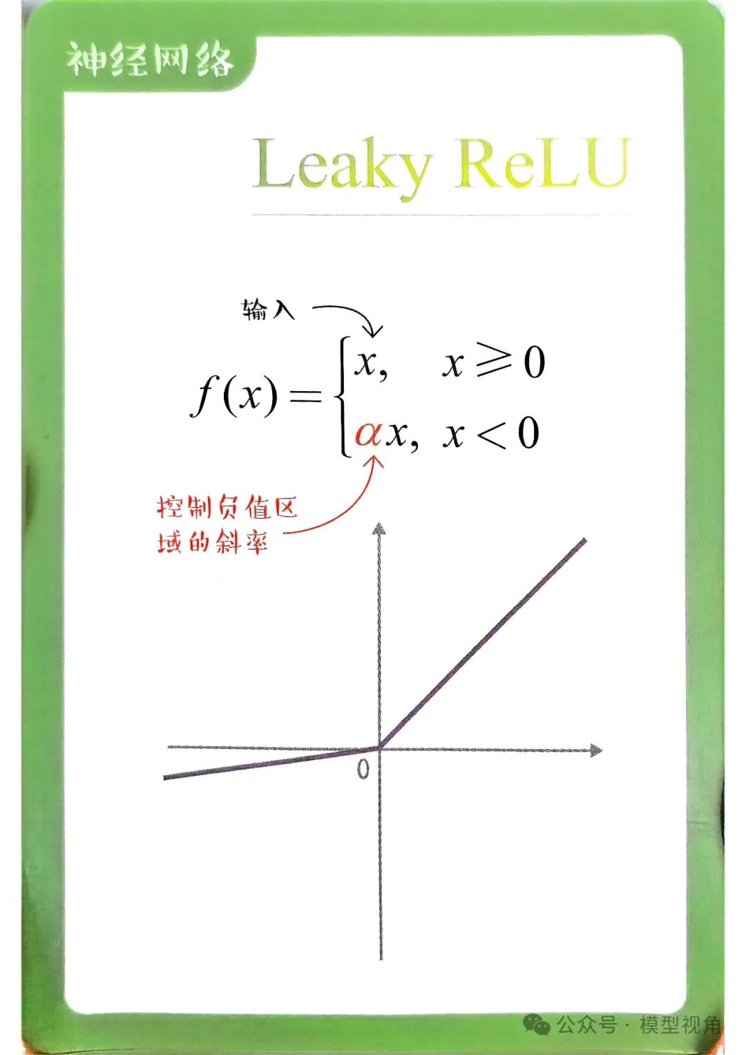 为了解决 ReLU 的 "死亡问题",提出了 Leaky ReLU,定义为: