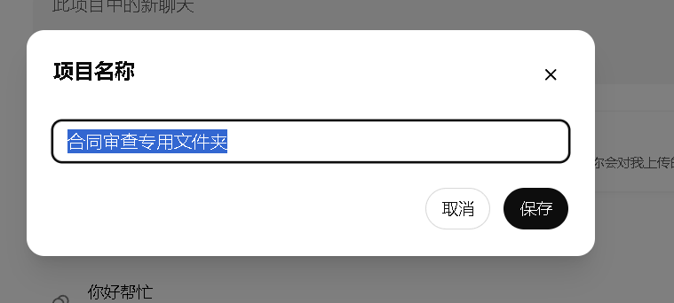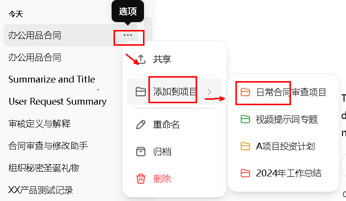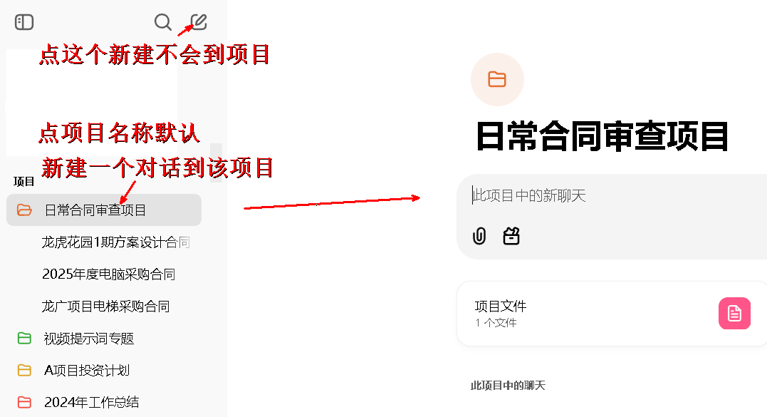 注意,点某一个项目名称,就会默认在这个项目中启动一个新的对话