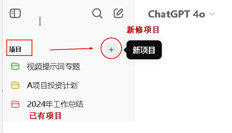然后左边就多了一个文件夹,在这个项目下的所有对话都自动归集到这个项目