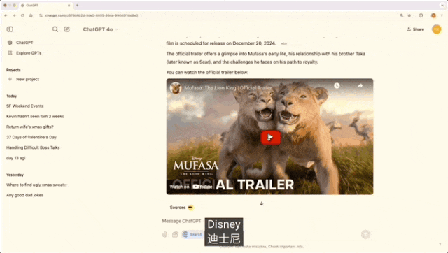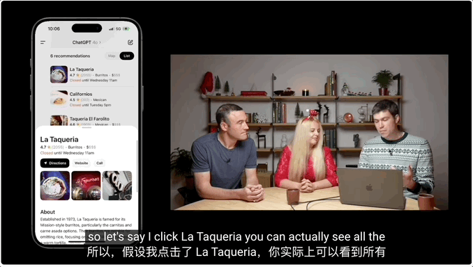 这一能力,让ChatGPT的搜索能力结合了12月13日上线的实时语音视频通话功能。