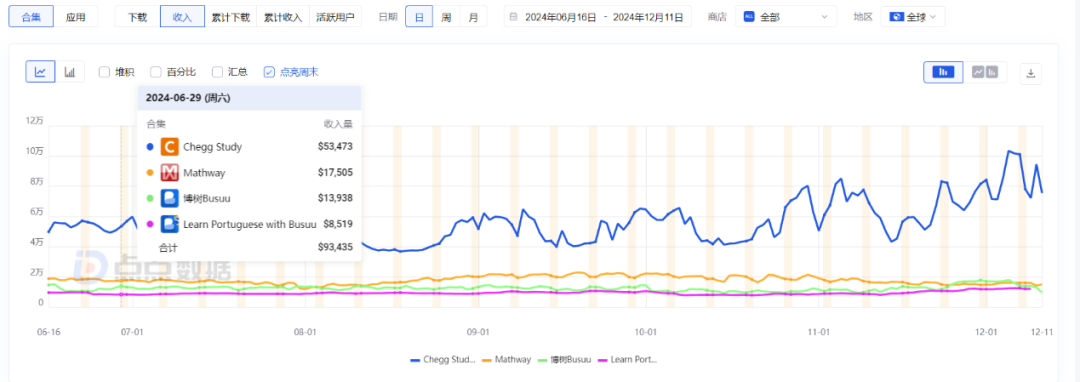Chegg 旗下产品,大多产品功能已并入 Chegg Study 中,目前在线仅剩 Chegg Study、Mathway和Busuu | 来源 Sensor Tower、点点数据上个月,Chegg(NYSE:CHGG)发布了 2024 年第三季度财报。据最新数据,Chegg 今年第三季度营收 1.37 亿美元,同比上一财年第三季度的 1.58 亿美元,下降了 13%;订阅服务收入 1.2 亿美元,同比下降 14%。净亏损 2.13 亿美元,亏损同比扩大了 10 倍左右;non-GAAP 净利润为 980 万美元,同比下降 58%。