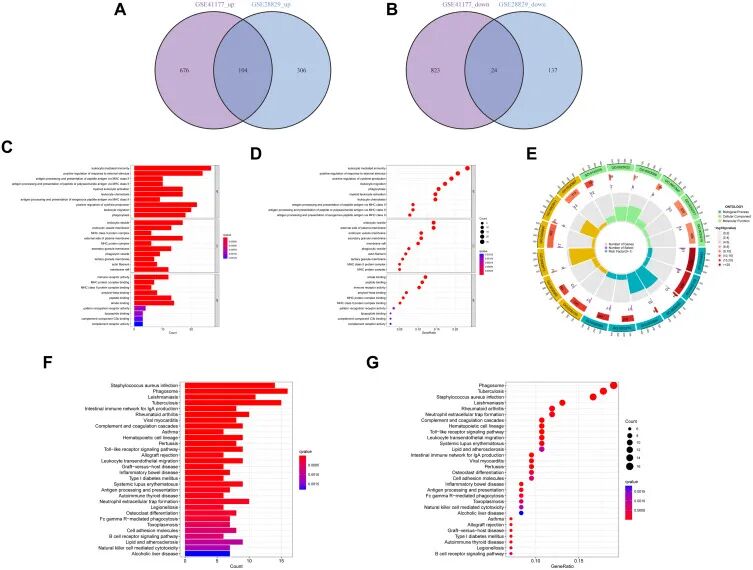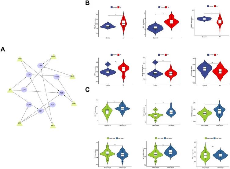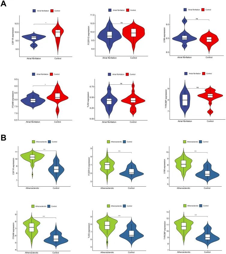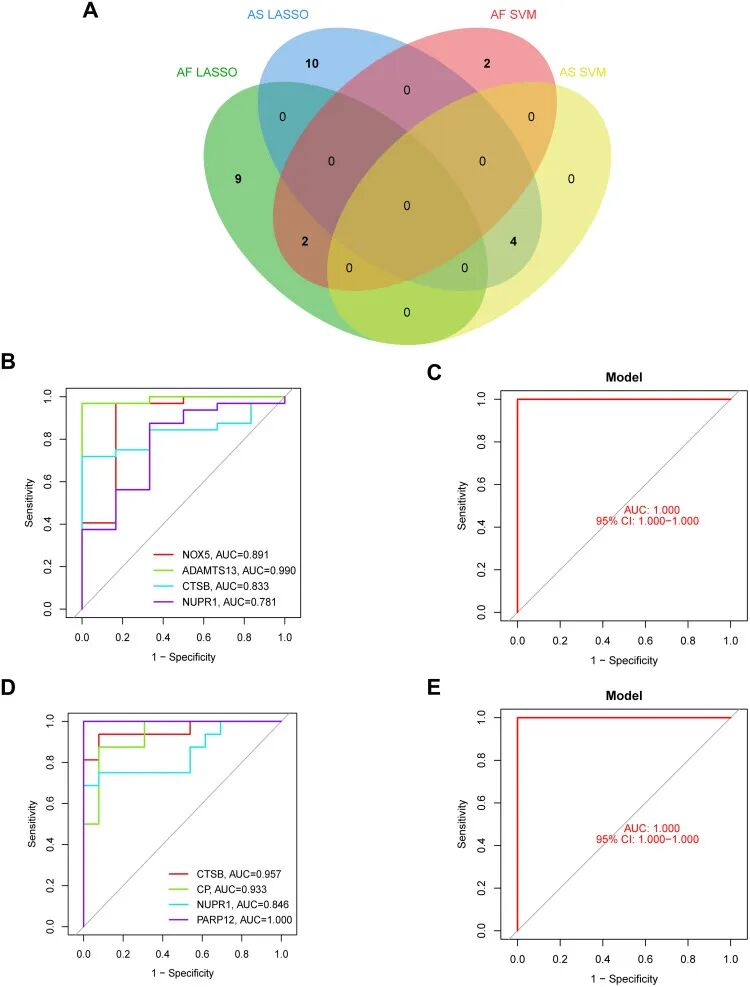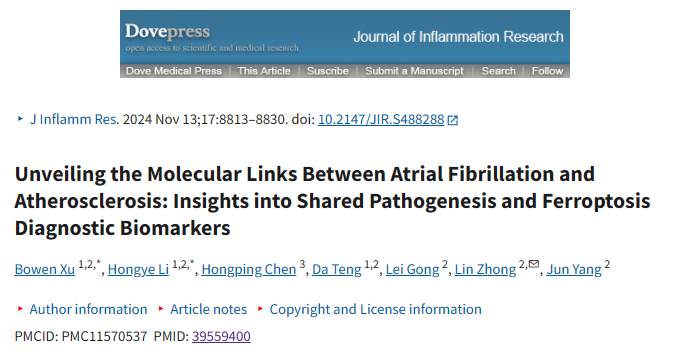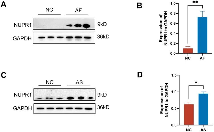 在AF和AS中,分别识别出1627个和571个DEG,交叉的DEG有128个,还识别出47个常见的FDG。基因本体论(GO)和京都基因和基因组百科全书(KEGG)对DEG的分析表明,它们与白细胞免疫等生物学过程和途径相关,FDG也参与特定的功能和途径。鉴定出15个关键基因,验证了CSF1R和ITGAM的表达差异,预测了7个转录因子的差异表达。筛选特征基因构建诊断效果良好的模型,免疫浸润显示NUPR 1与免疫环境改变相关,WB显示NUPR 1在疾病模型中高表达。对这篇文章感兴趣的老师,欢迎扫码咨询!