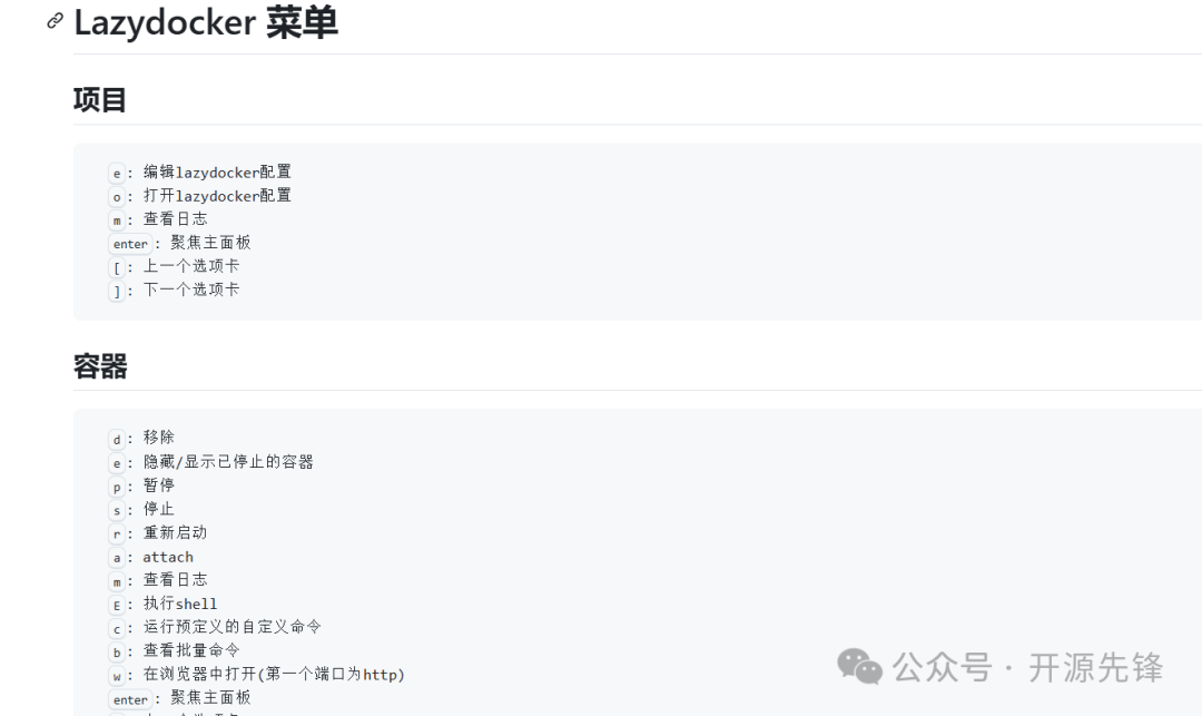 操作便捷:不仅能查看,还能直接操作!你可以通过 Lazydocker 启动、停止容器,查看日志,甚至进入容器内部。而且,所有操作都能在界面上一步到位,省时省力。