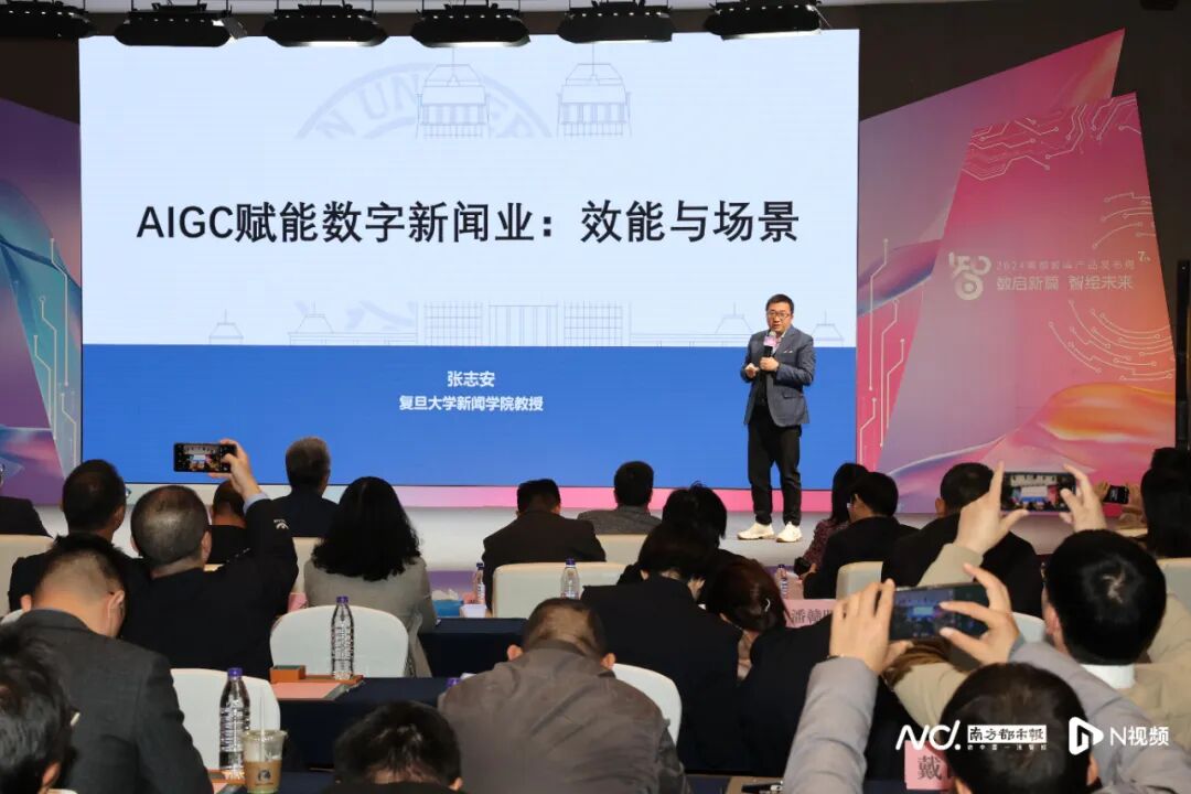 复旦大学新闻学院教授、中国新闻史学会应用新闻传播专业会理事长张志安带来《AIGC赋能数字新闻业:效能与场景》主旨演讲。