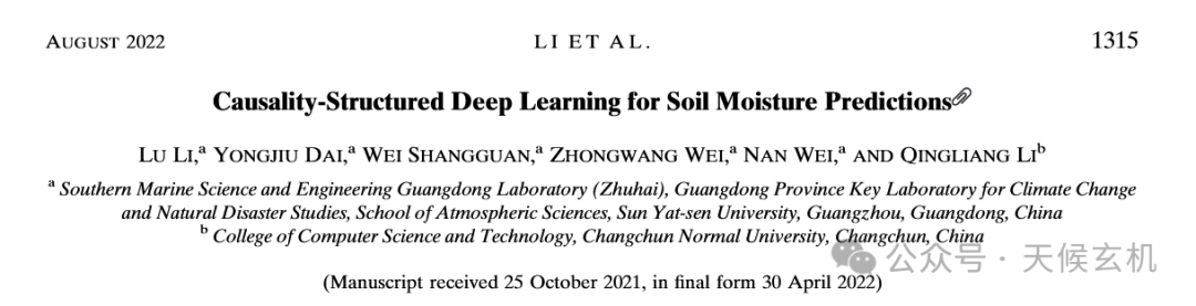 引用方式:Li, L., Dai, Y., Shangguan, W., Wei, Z., Wei, N., & Li, Q. (2022). Causality-Structured Deep Learning for Soil Moisture Predictions. Journal of Hydrometeorology, 23(8), 1315-1331.