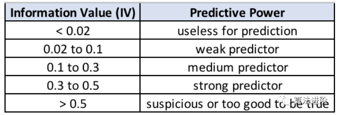 在记分卡开发中,WOE编码(见第4.3.2节)和IV通常齐头并进。这两个概念都来自逻辑回归,是信用卡行业的标准做法。IV是一种流行且广泛使用的度量方法,因为与IV相关的变量选择有非常方便的经验法则,如下所述