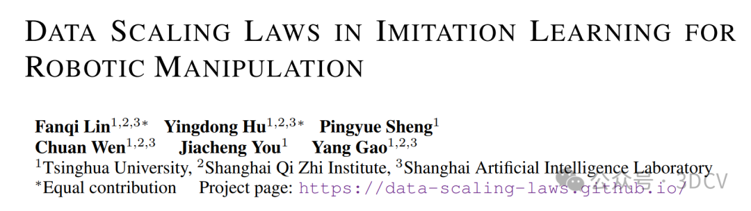 CoRL是全球机器人学习领域的顶级学术会议,每年汇聚来自全球顶尖学府的创新研究,评选出的最佳论文通常代表着前沿技术与重大突破。清华团队此次获奖的论文标题为《Data Scaling Laws in Imitation Learning for Robotic Manipulation》,关注的是数据规模定律在机器人操作中的模仿学习中的应用,尤其是能否通过适当的数据规模来实现零样本泛化。