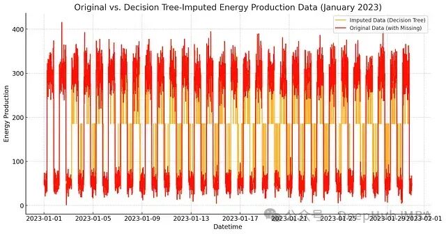# 将预测值填充到原始数据集 tree_filled_data = data_with_index.copy() tree_filled_data.loc[tree_filled_data['Energy_Production'].isna(), 'Energy_Production'] = tree_predicted_values