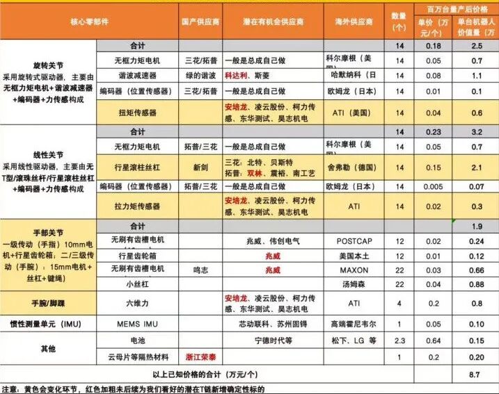 8、特斯拉机器人供应链梳理