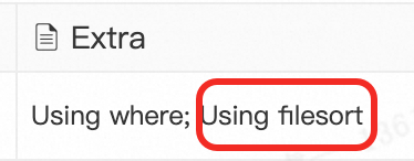 我们使用 explain 看一下,发现了这么一个信息:“Using filesort”,
