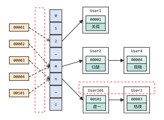 所以这个查询效率极高,一个哈希运算加上一个遍历链表的时间,基本上是 O(1),是单条记录查询效率最高的存储结构。