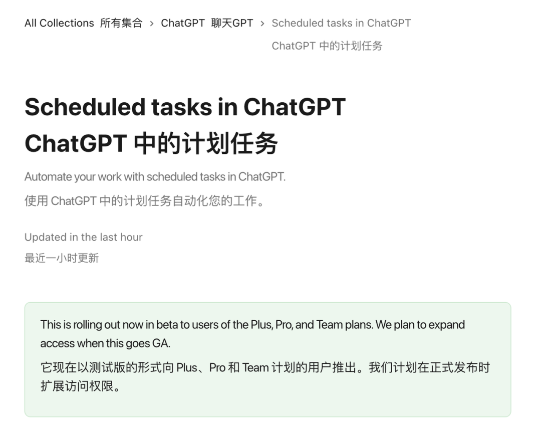Tasks 功能现以测试版形式向 Plus、Pro 和 Teams 用户开放,后续将覆盖 ChatGPT 所有用户。