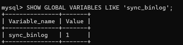 - 如果设置为 1,表示 每次写操作后都强制将二进制日志刷写到磁盘,以确保数据持久性。