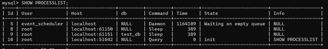 2. 查看当前 MySQL 正在运行的所有线程及其状态